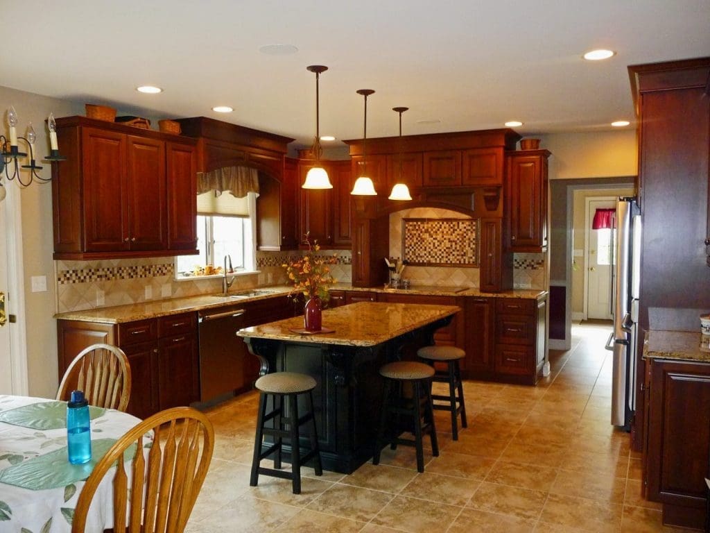 4 X 12 2 X 12 Bronze chair rail tile and hearthstone blend mosaics at the cooktop