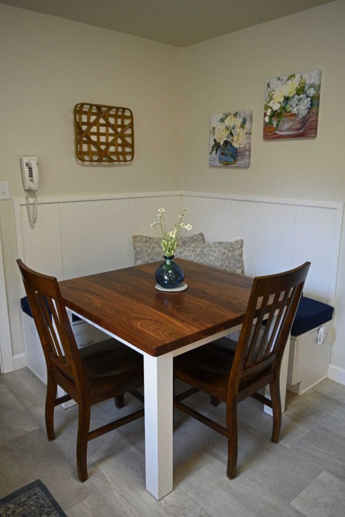 - Table Top: 1-1/2″ thick flat walnut butcherblock
